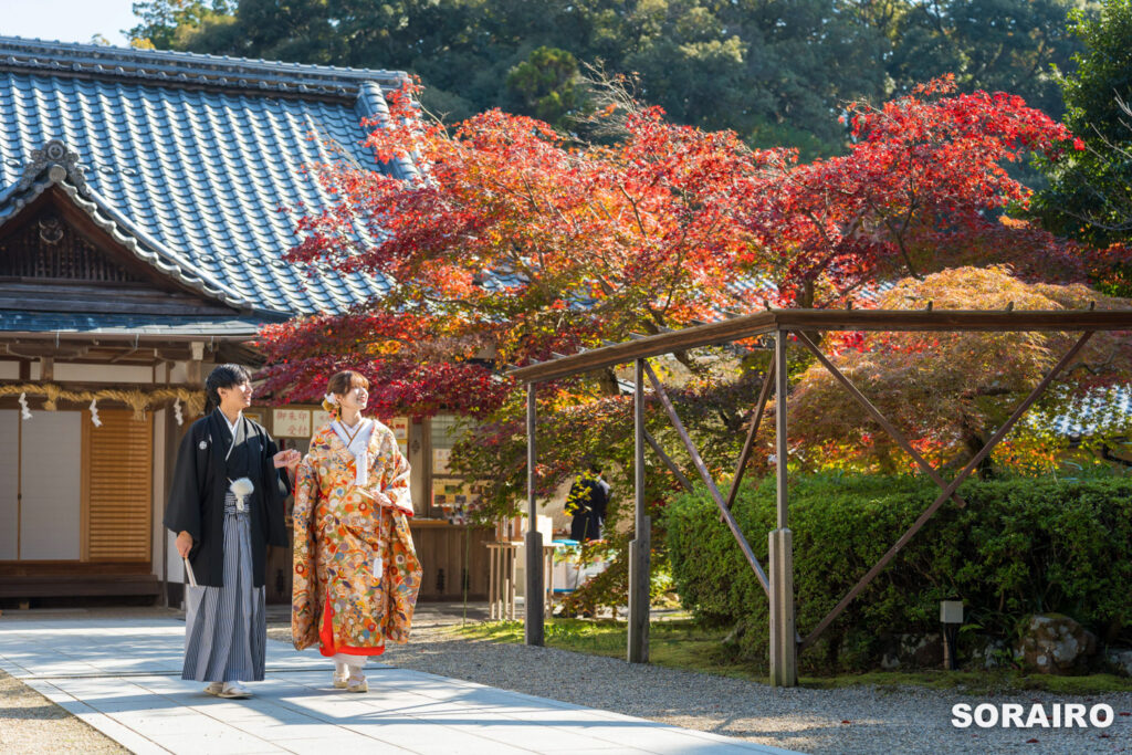 撮影場所としても非常に人気のお寺で完全予約制ですので、この場所で撮影をご希望の際はお早めにお申し出ください。