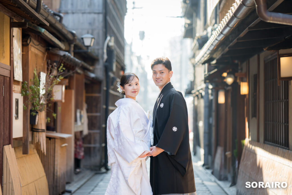 祇園では規制により午前中の撮影のみ可能ですので、比較的観光客の方々も少なめな時間帯で撮影が可能です◎