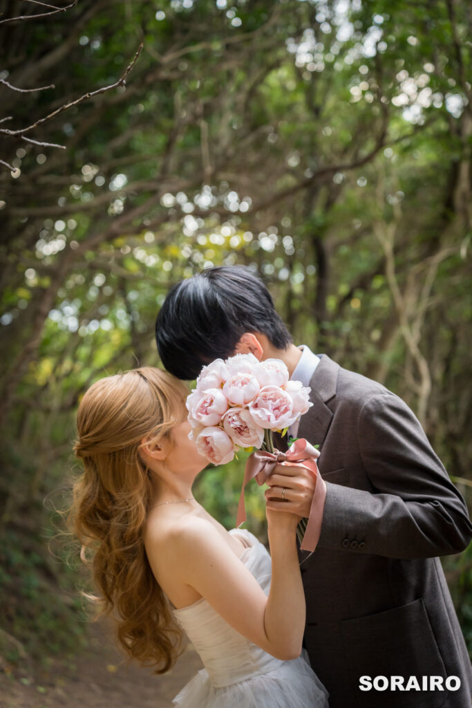 尚、駐車場から撮影スポットまでは10分近く山道を歩きますので、花嫁様はスニーカーのご準備もお願い致します。(薄暗いのでヒールだと危険です)
